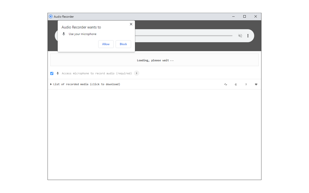 To work with this addon, please click on the toolbar button to open the interface. To start recording, please click on the – Start Recording – button. The app will ask you to permit microphone access. Please note that the final audio will be downloaded to the default download location in your system.