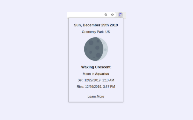 First, open up your browser and click on the three lines at the top left of your screen. Next, select “More tools” then “extensions” then “get extensions” then choose an extension to use. Press “Add.” At this point, wait a few minutes. Finally, the Current Moon Phase extension has been installed.