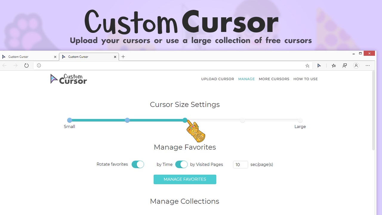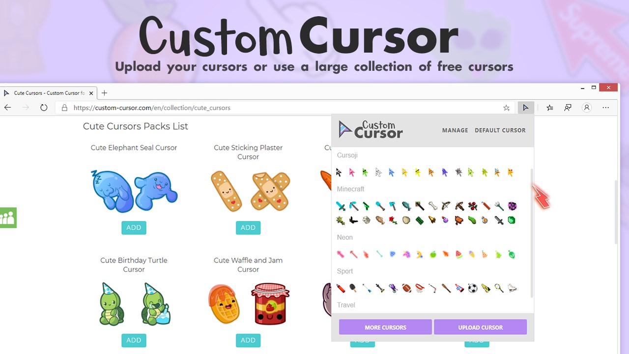 Create your personal collection of cute cursors and manage your collection on the Upload page.