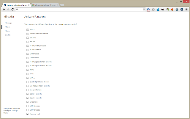 The context menu this extension enables is customizable through the options page. To get there either click on the item or go to Wrench -> Tools -> Extensions -> d3coder options.