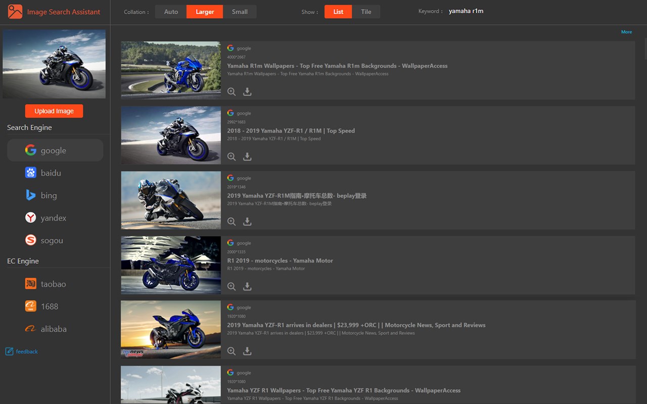 It supports multi-engine search for pictures; supports Taobao, 1688, and Alibaba e-commerce websites to search products with pictures