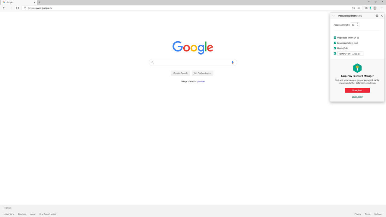 Kaspersky Password Manager Extension (for Windows) generates strong passwords for your accounts. This extension also checks the password strength when you register on a website or change your password.