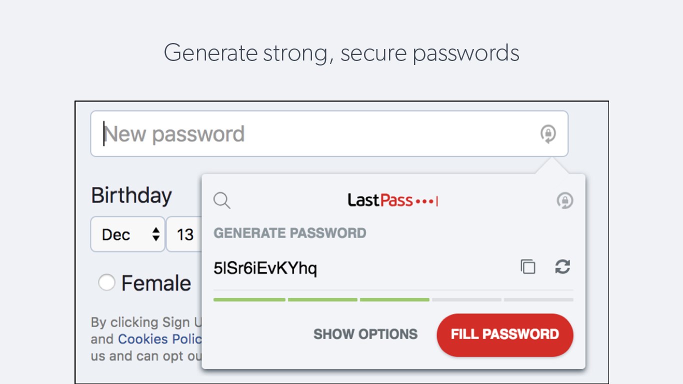 – Store usernames and passwords and LastPass will log you in automatically