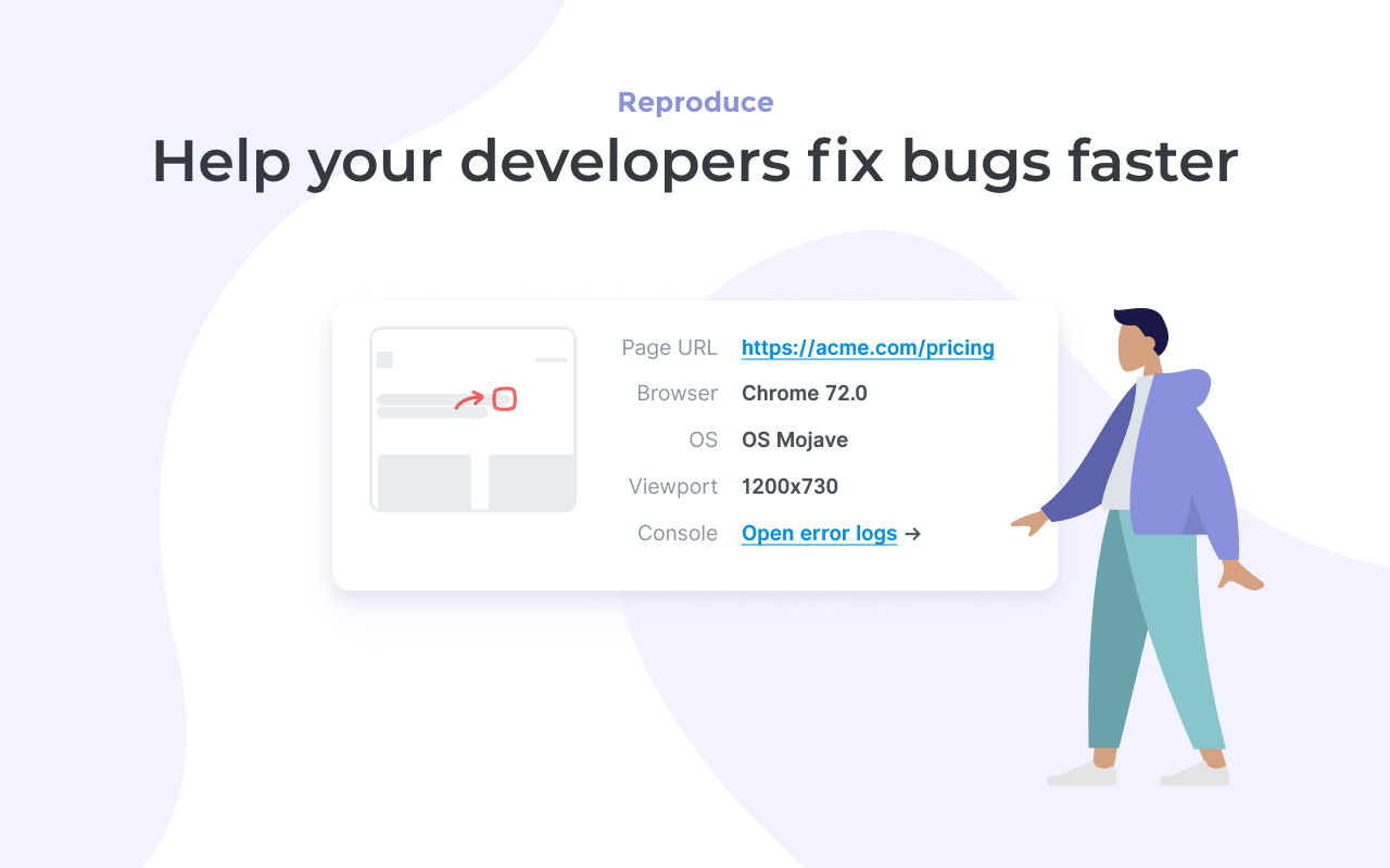Collect bugs reports and feedback directly into your team’s existing issue tracking and project management tools. No more feedback lost in emails, flying screenshots, and meeting notes means you won’t need to train and onboard your team to new tools and workflows.