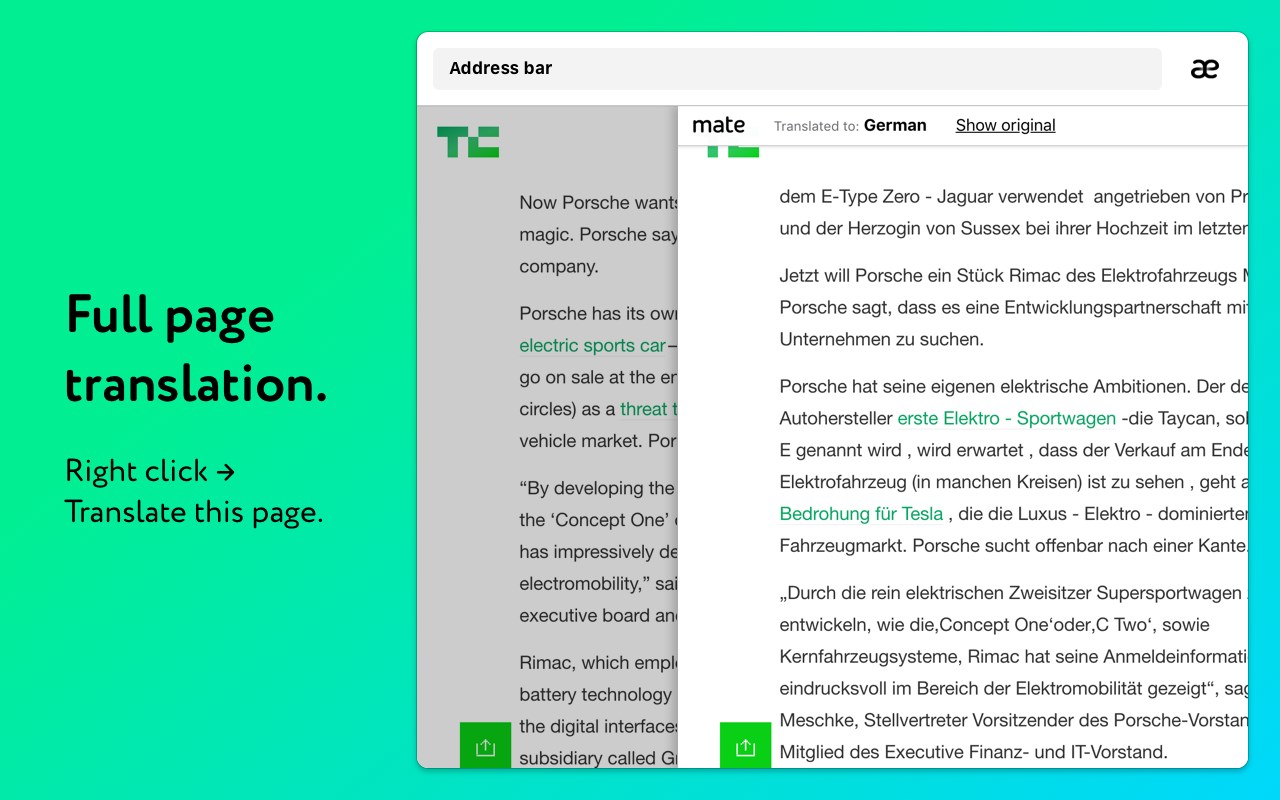 Just like a real-life mate has your back, Mate Translate Extension for Edge has you covered for all your translation needs. Mate helps you easily and effortlessly translate words, phrases and documents from 103 languages. Mate’s comprehensive dictionary and custom curated phrasebook will help you accelerate your language learning with both page translation and optional human translation. Mate isn’t just for reading and writing but for full language mastery and comprehension. Download your Mate Edge translator today and never feel lost in language again.