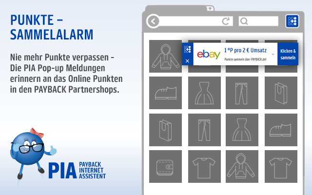 >> Einfach & bequem – Durch einen Klick auf den PIA Punkte-Sammelalarm werden Punkte automatisch gesammelt, ohne sich zuvor auf PAYBACK.de einzuloggen.