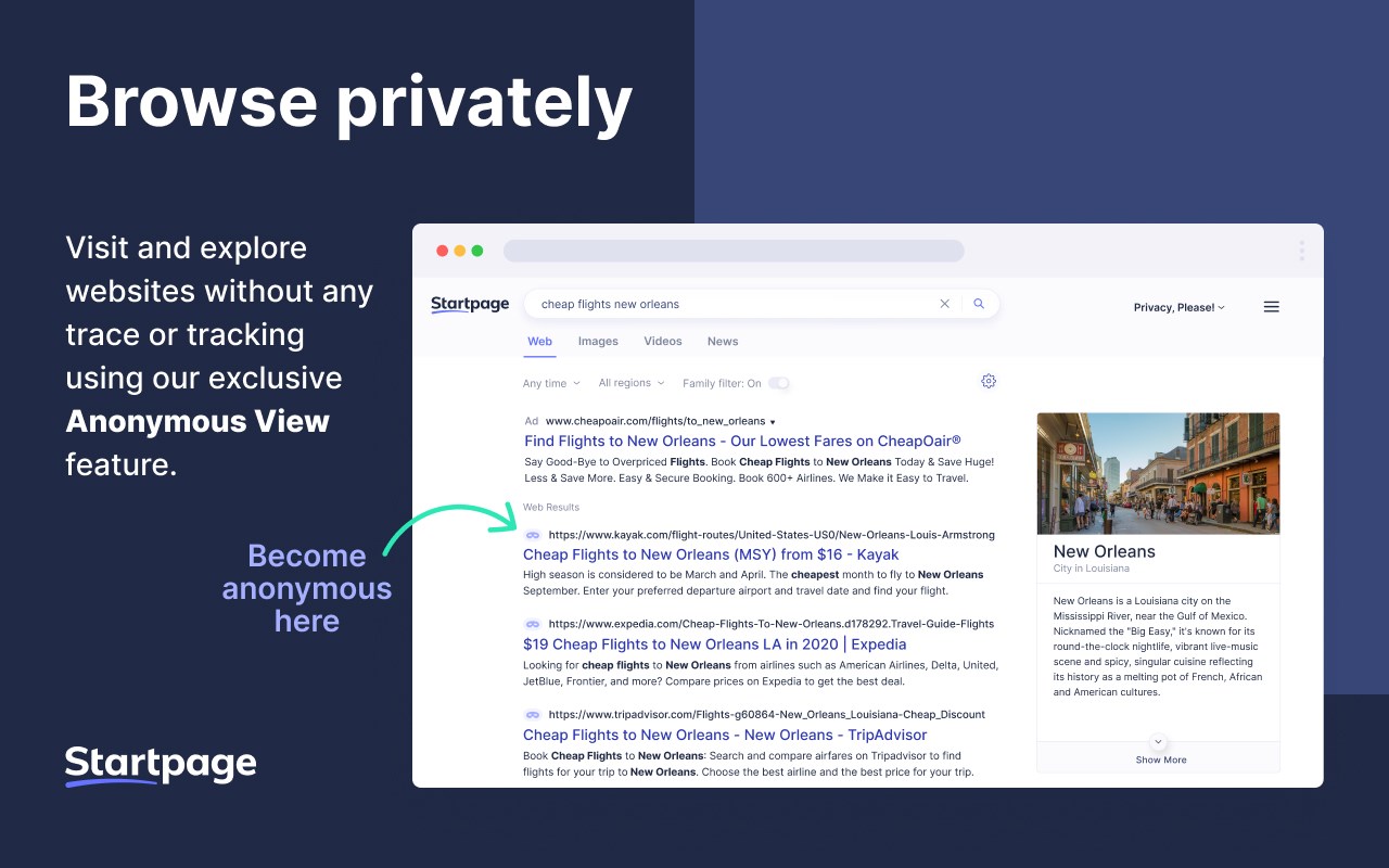– TechRadar: “Startpage’s ‘Anonymous View’ link …makes it incredibly easy for users to visit websites while protecting their privacy.”