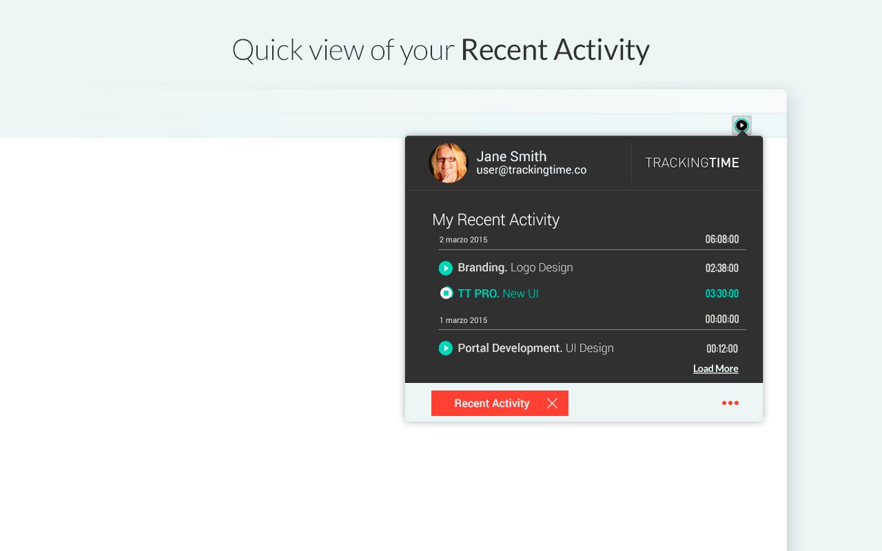 When you start tracking a task inside any of the supported apps the Button will automatically identify the task and project you’ve selected and sync them in your TrackingTime account. There is no integration setup required. It just works out of the box.