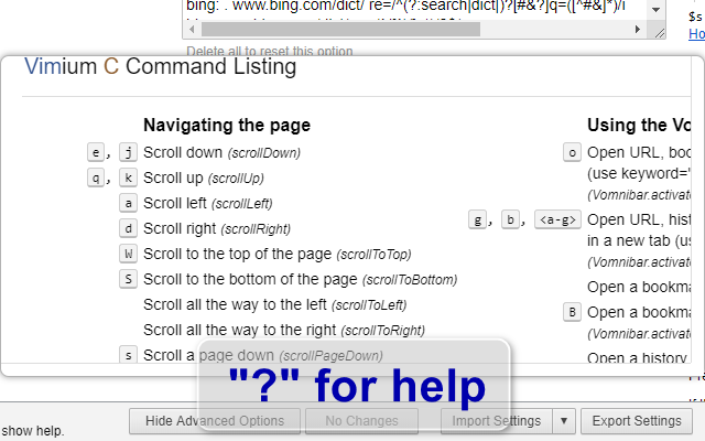 * configure key mappings to bind Vimium C’s tens of commands to other key sequences, and add options to switch command behaviors